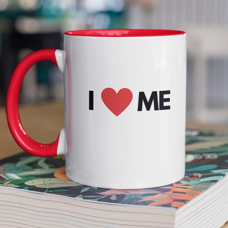 Чашка керамічна з принтом "i love me" 330 мл, біла з червоною ручкою