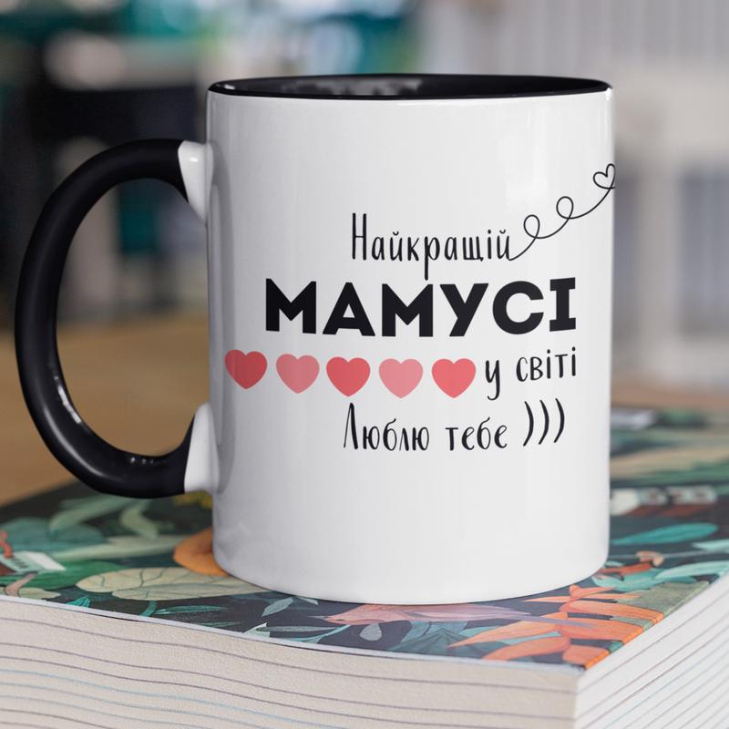 Чашка керамічна з принтом "найкращій мамусі" 330 мл, біла з чорною ручкою
