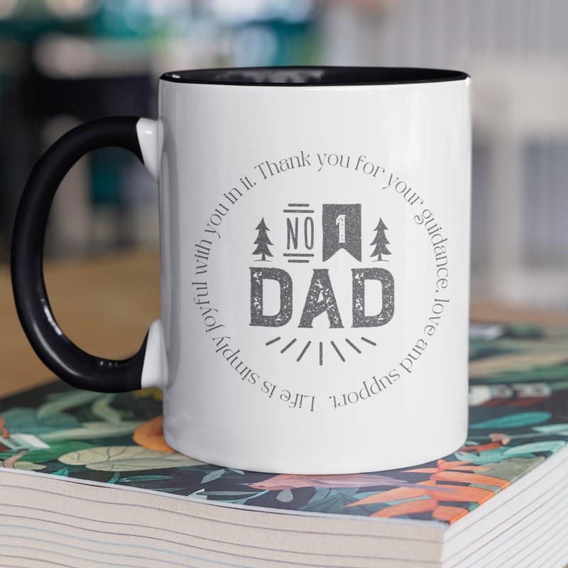 Чашка керамічна з принтом "№ 1 dad" 330 мл, біла з чорною ручкою
