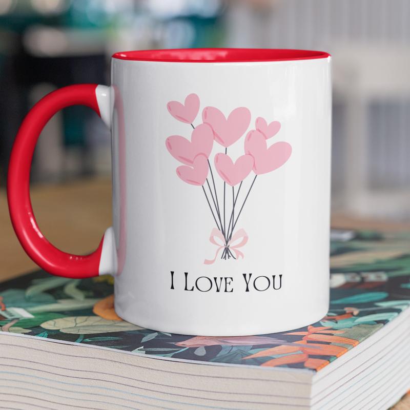 Чашка керамічна з принтом "i love you" 330 мл, біла з червоною ручкою