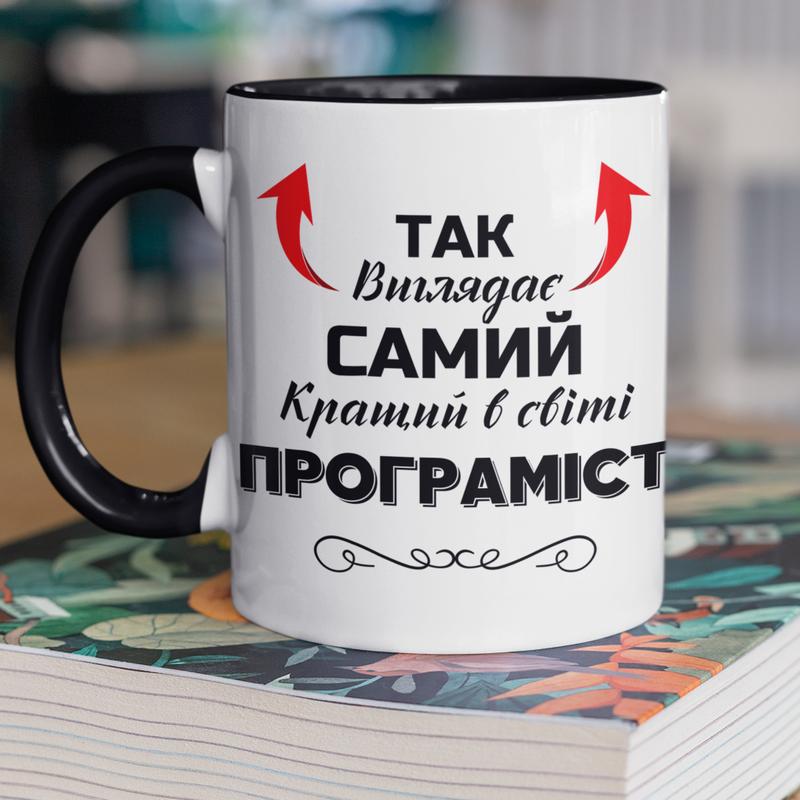 Чашка керамічна з принтом "так виглядає самий кращий в світі програміст" 330 мл, біла з чо...