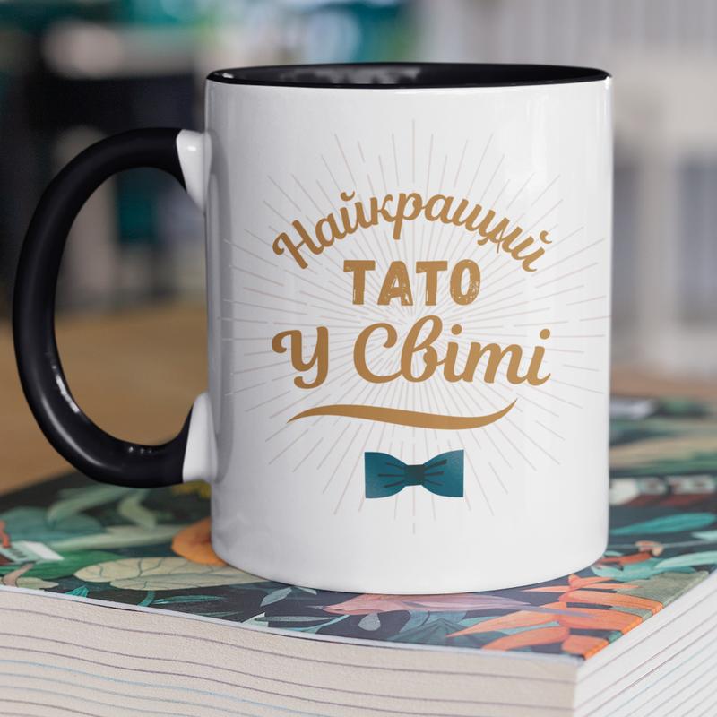 Чашка керамічна з принтом "найкращий тато у світі" 330 мл, біла з чорною ручкою