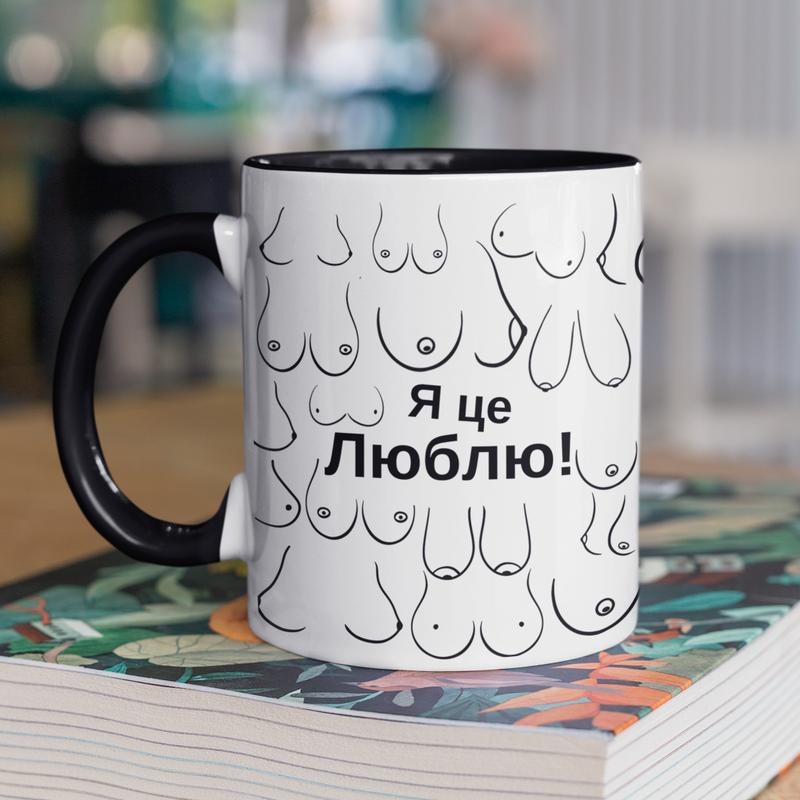 Чашка керамічна з принтом "я це люблю" 330 мл, біла з чорною ручкою
