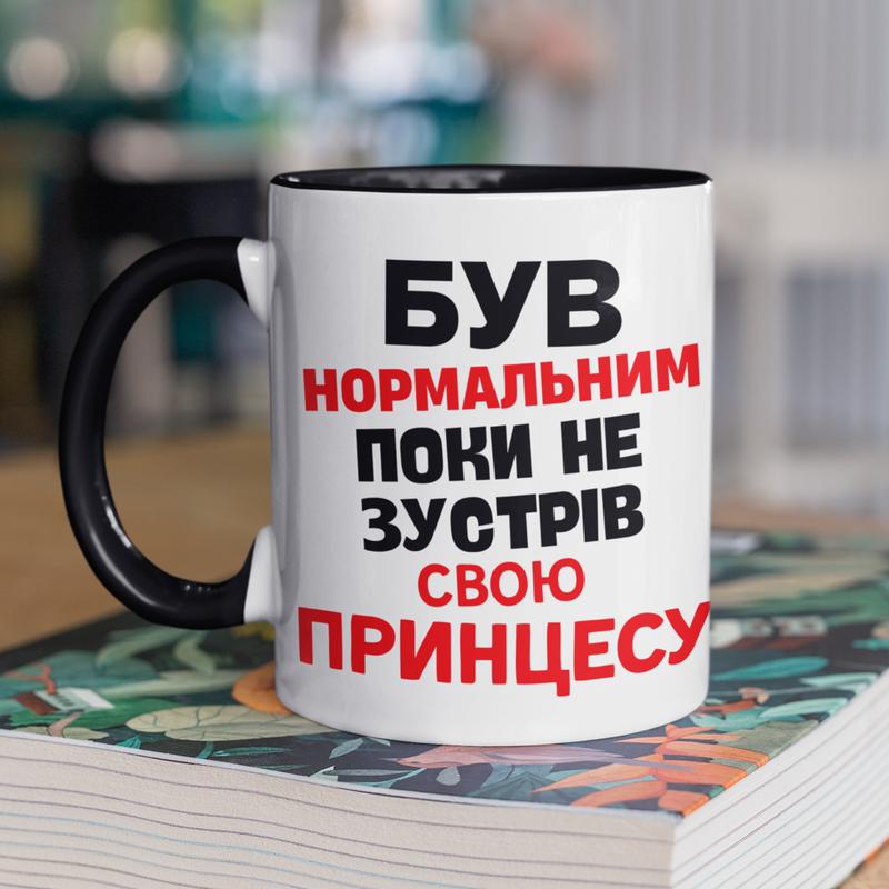 Чашка керамічна з принтом "був нормальним поки не зустрів принцесу" 330 мл, біла з чорною...