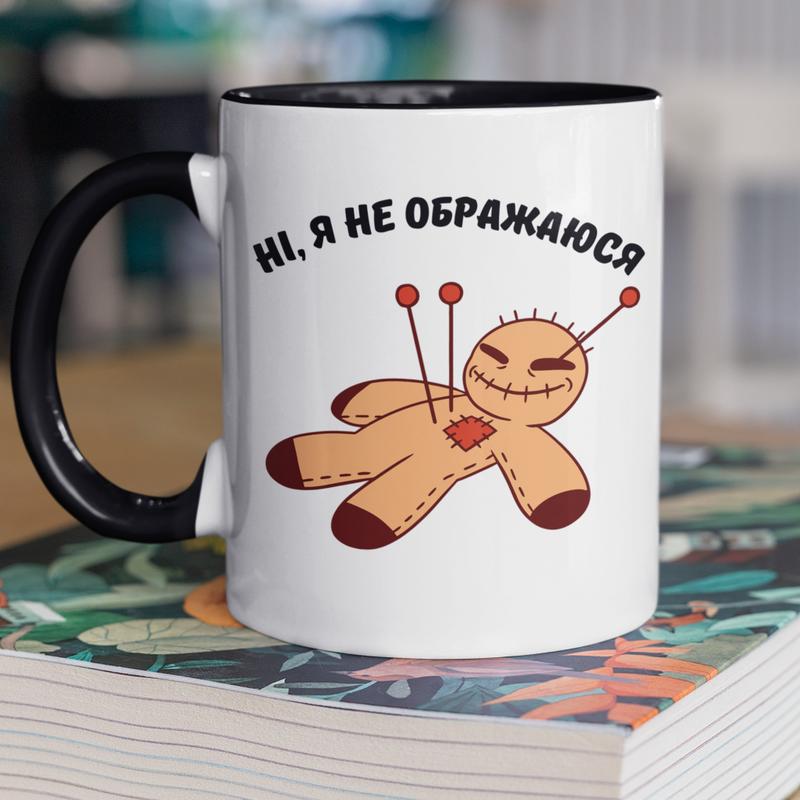 Чашка керамічна з принтом "я не ображаюся" 330 мл, біла з чорною ручкою