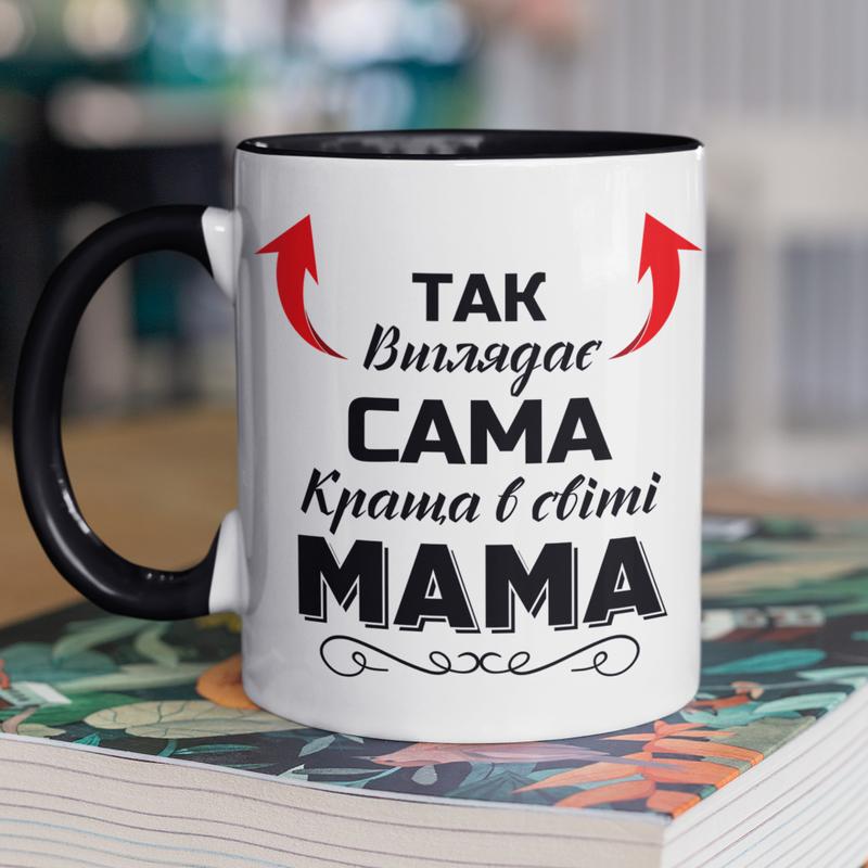 Чашка керамічна з принтом "так виглядає сама краща в світі мама" 330 мл, біла з чорною руч...