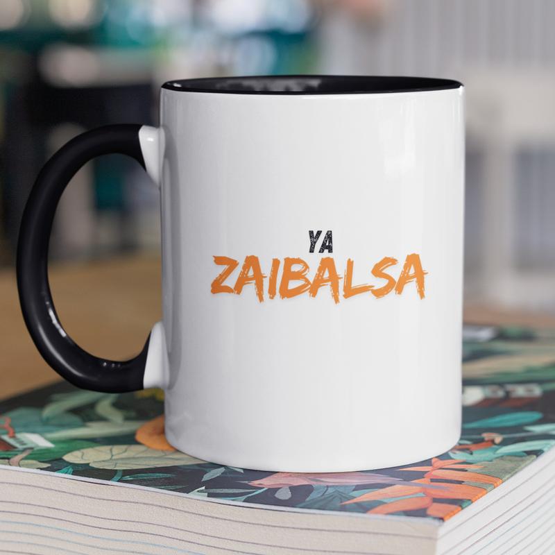 Чашка керамічна з принтом "ya zaibalsa" 330 мл, біла з чорною ручкою
