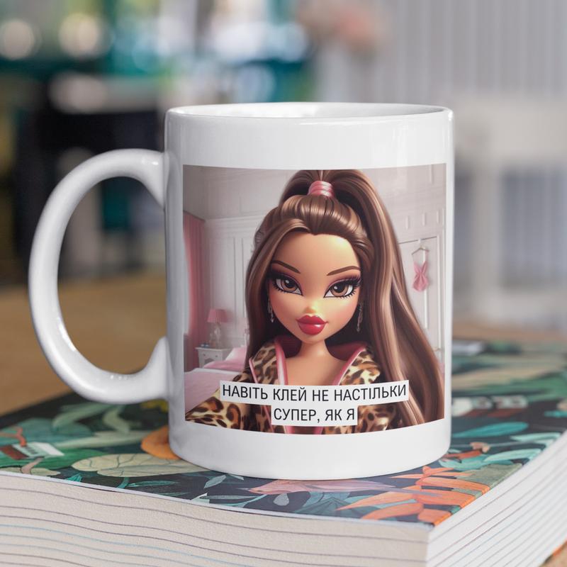 Чашка керамічна з принтом "клей не настільки супер як я" 330 мл, біла