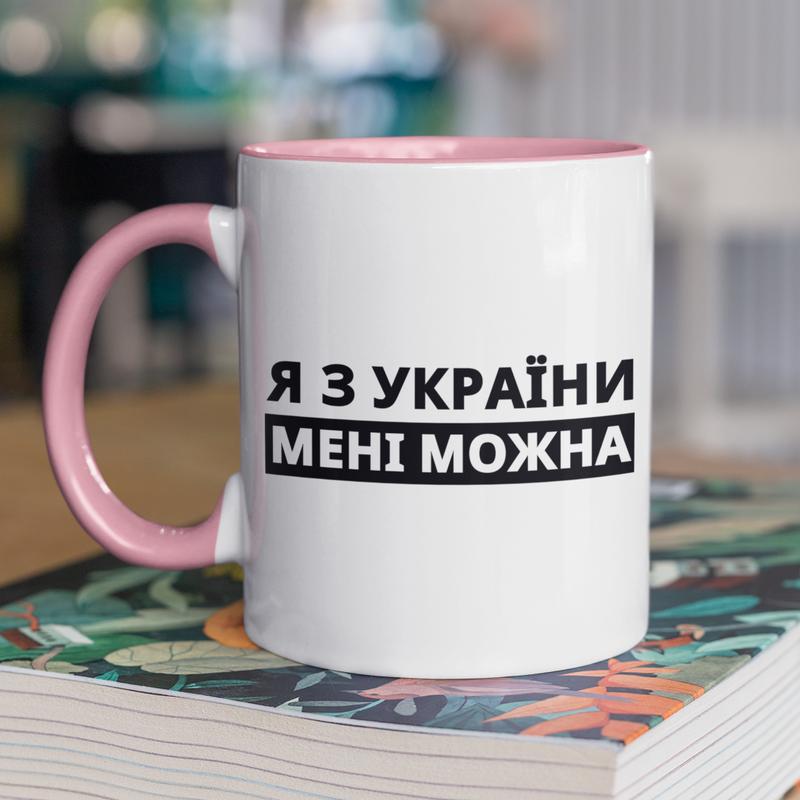 Чашка керамічна з принтом "я з україни" 330 мл, біла з рожевою ручкою
