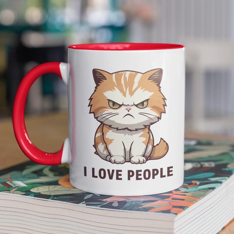 Чашка керамічна з принтом "i love people" 330 мл, біла з червоною ручкою