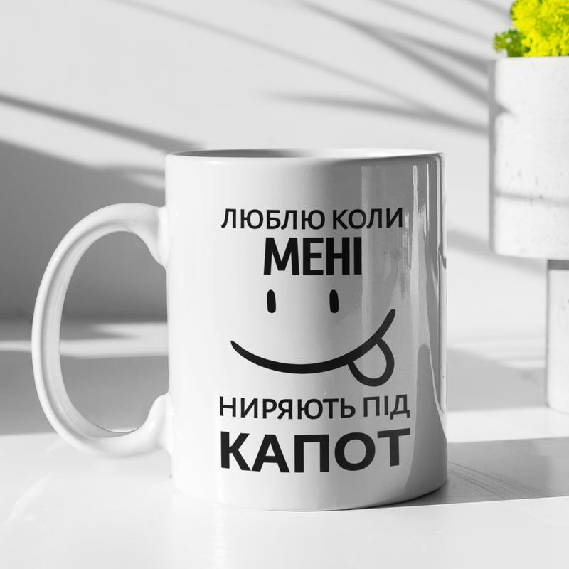 Чашка керамічна з принтом "люблю коли ниряють під капот" 330 мл, біла