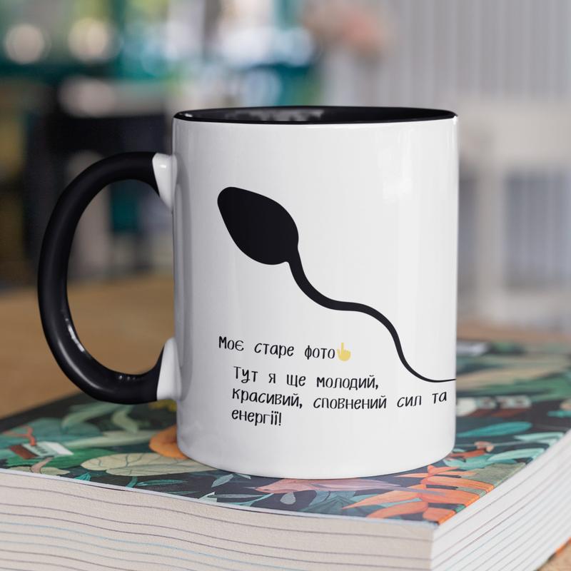 Чашка керамічна з принтом "моє старе фото" 330 мл, біла з чорною ручкою