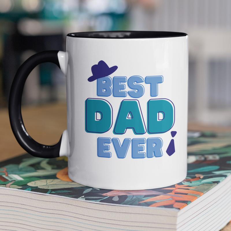 Чашка керамічна з принтом "best dad ever" 330 мл, біла з чорною ручкою