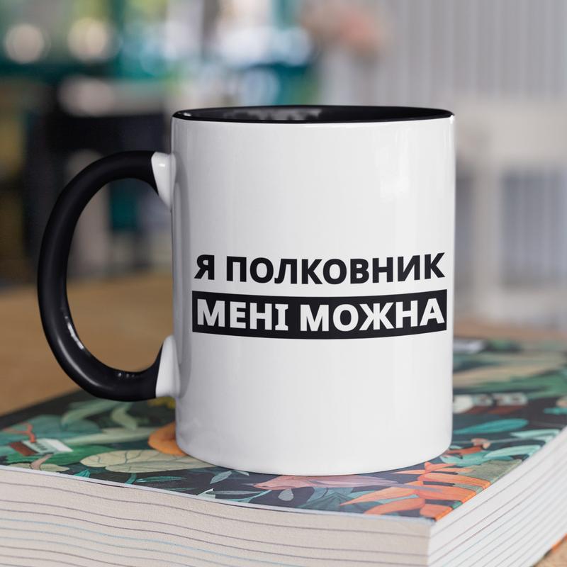 Чашка керамічна з принтом "я полковник мені можна" 330 мл, біла з чорною ручкою