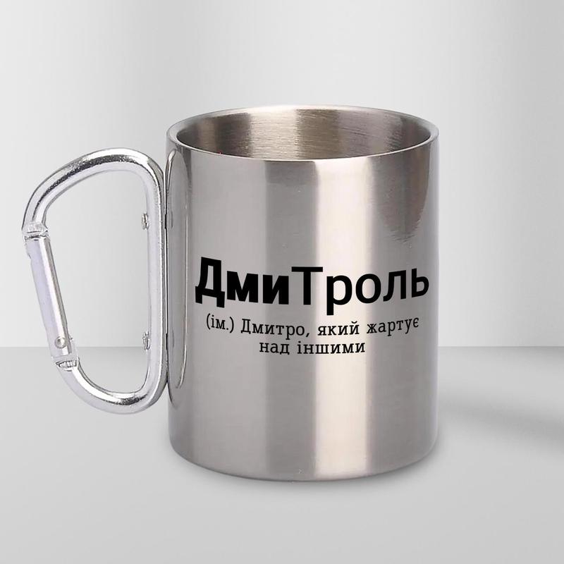 Кружка металева з карабіном "дмитроль" 300 мл срібляста