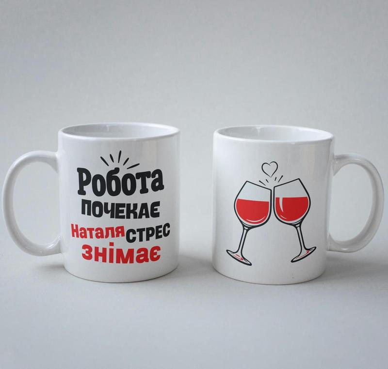 Кружка з принтом "наталя стрес знімає" 330 мл біла