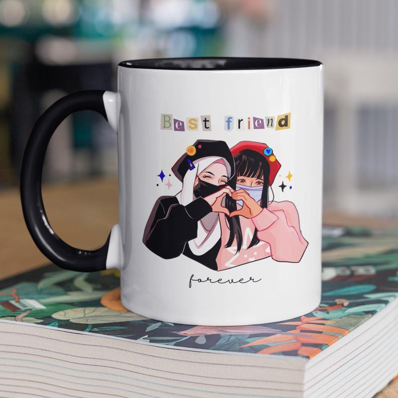 Чашка керамічна з принтом "best friend" 330 мл, біла з чорною ручкою