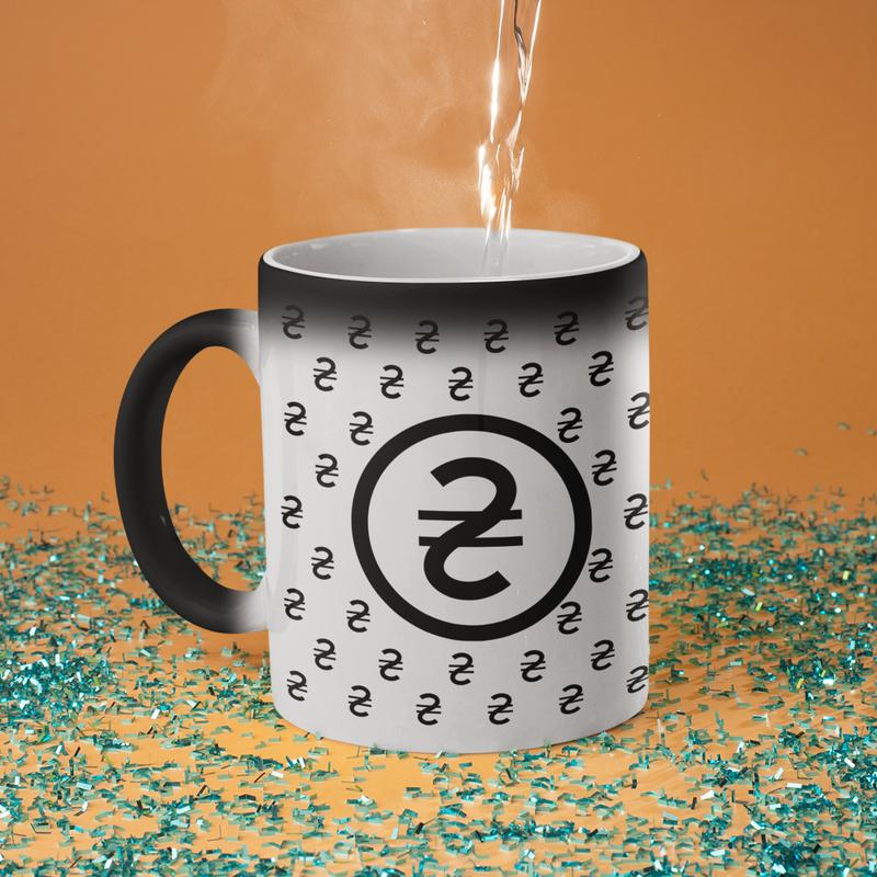 Чашка хамелеон керамічна з принтом "гривня" 330 мл