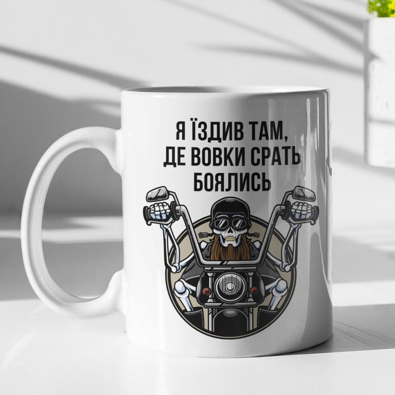 Чашка керамічна з принтом "я їздив там де вовки боялись" 330 мл, біла
