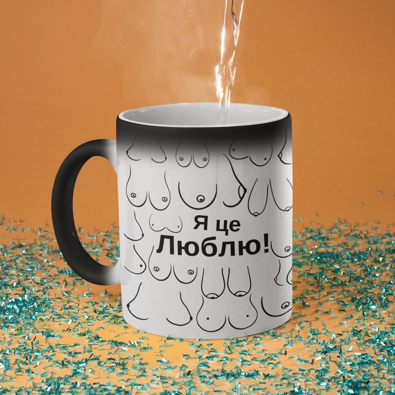 Чашка хамелеон керамічна з принтом "я це люблю" 330 мл