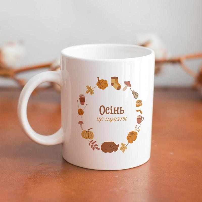 Кружка з принтом "осінь це щастя" 330 мл біла