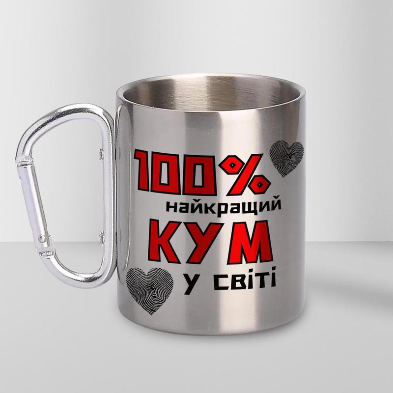 Кружка металева з карабіном "100% найкращий кум" 300 мл срібляста
