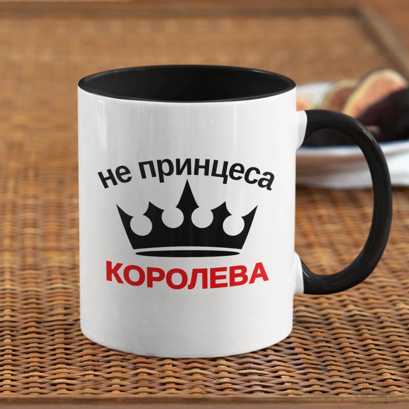 Чашка керамічна з принтом "не принцеса королева" 330 мл, біла з чорною ручкою