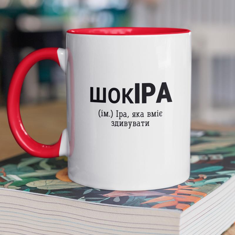 Чашка керамічна з принтом "шокіра" 330 мл, біла з червоною ручкою