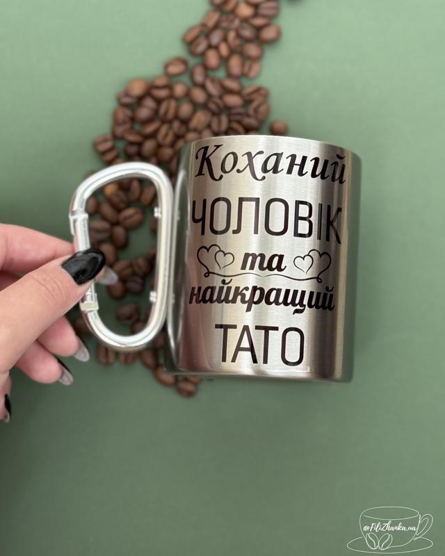 Металева чашка з карабіном⛓️ 💸Ціна: 380 грн (стандартне пакування) 💸Ціна: 405 грн (подарункове пакування🎁) Обʼєм: 300 мл 🇺🇦 Власне виробництво 🇺🇦 🖨️Можливий друк з вашими фото та текстом (розробка макету безкоштовна)