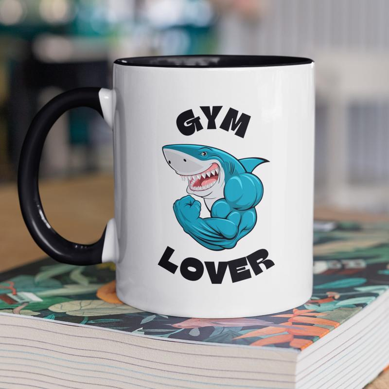 Чашка керамическая с принтом "gym lover" 330 мл, белая с черной ручкой