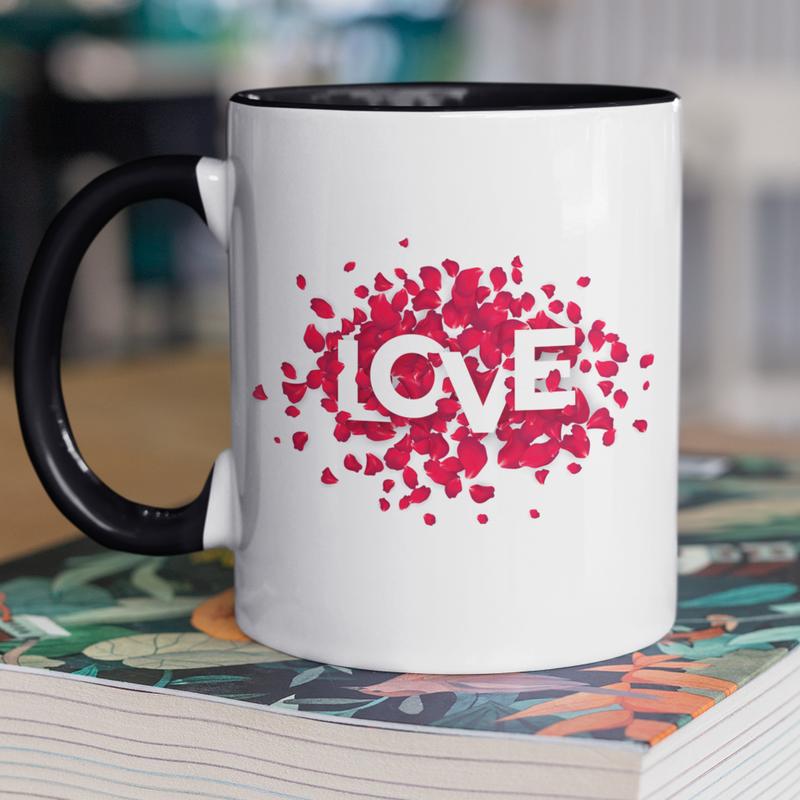 Чашка керамічна з принтом "love" 330 мл, біла з чорною ручкою