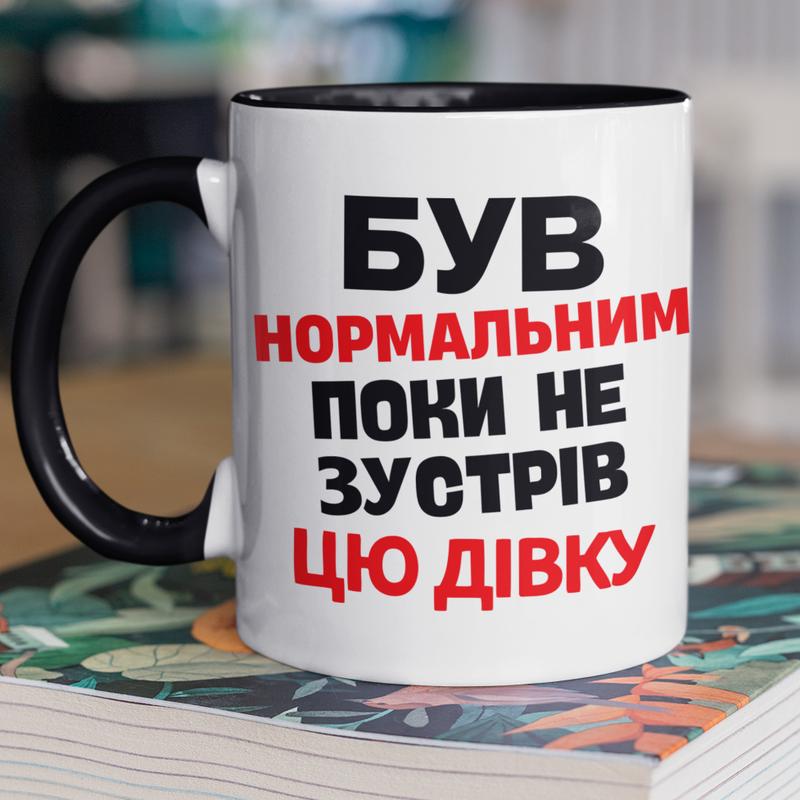 Чашка керамічна з принтом "був нормальним поки не зустрів цю дівку" 330 мл, біла з чорною...
