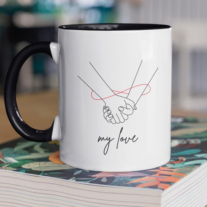 Чашка керамічна з принтом "my love" 330 мл, біла з чорною ручкою