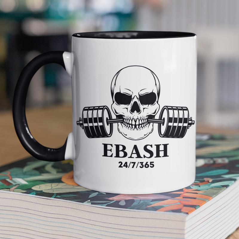 Чашка керамическая с принтом "ebash" 330 мл, белая с черной ручкой