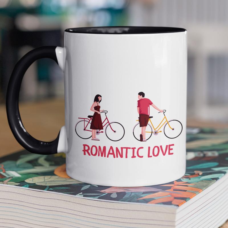 Чашка керамічна з принтом "romantic love" 330 мл, біла з чорною ручкою