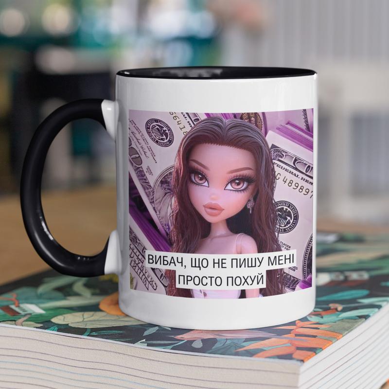 Чашка керамическая с принтом "не пишущая" 330 мл белая с черной ручкой