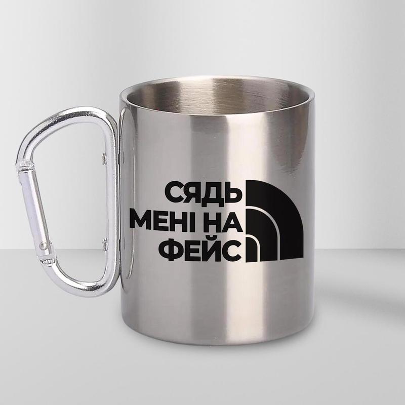 Чашка металлическая с принтом "на фейс" 300 мл с карабином, серебристая