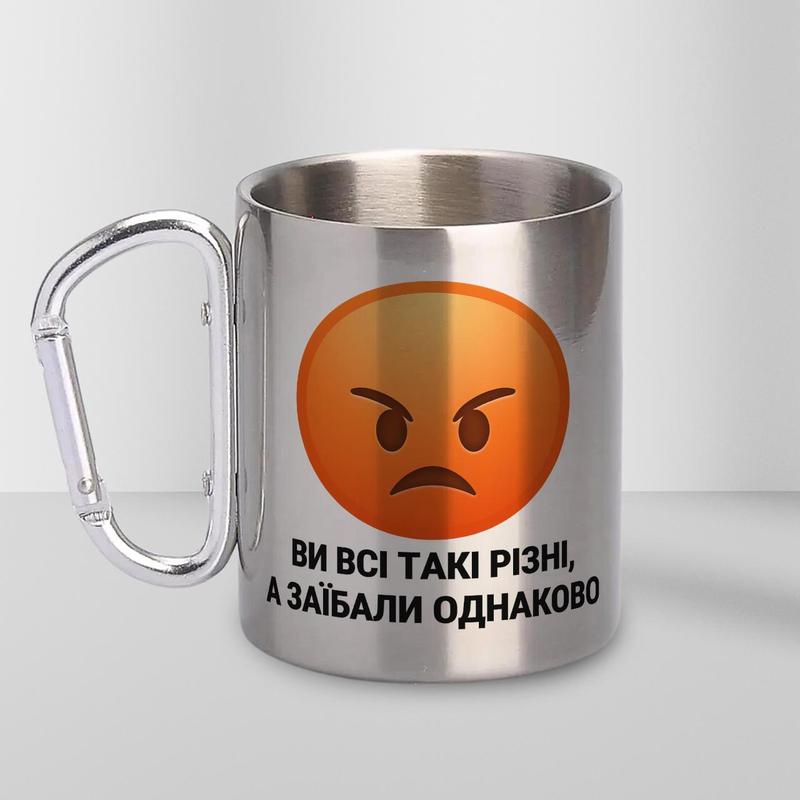 Кружка металлическая с карабином "вы все такие разные а заибаллы одинаково" 300 мл серебри...