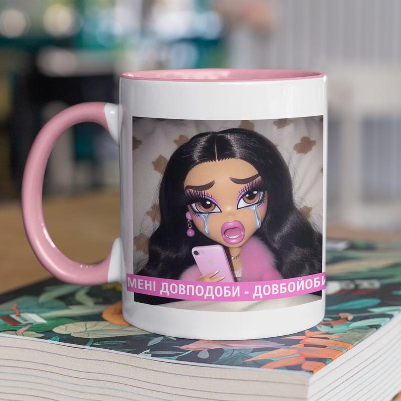 Чашка керамическая с принтом "мою долбуки дол*ойобы" 330 мл, белая с розовой ручкой