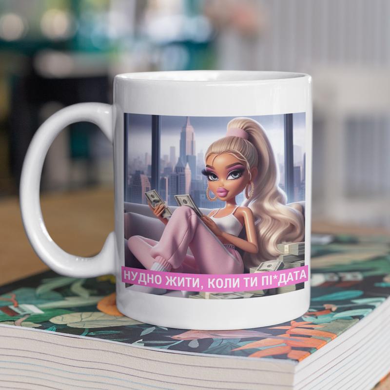 Чашка керамічна з принтом "нудно жити коли ти пі*дата" 330 мл, біла