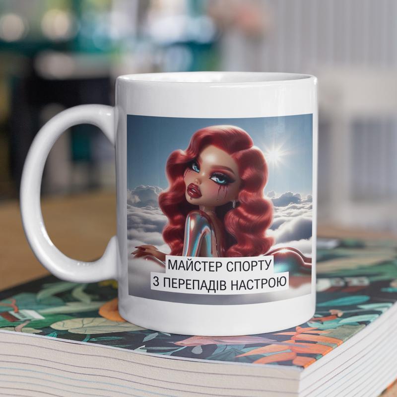 Чашка керамічна з принтом "майстер спорту з перепадів настрою" 330 мл, біла