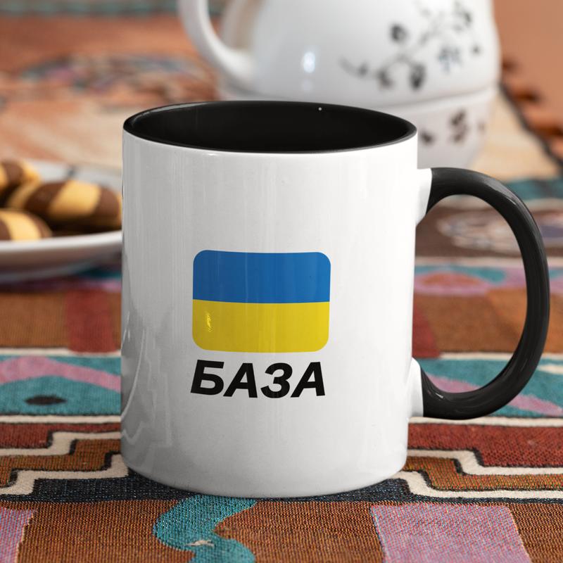Чашка керамічна з принтом "база" 330 мл, біла з чорною ручкою