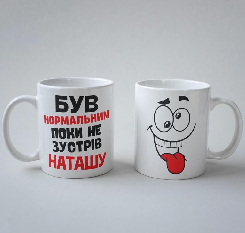 Кружка з принтом "був нормальним поки не зустрів наташу" 330 мл біла