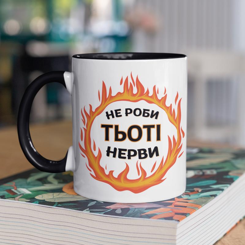 Чашка керамічна з принтом "не роби тьоті нерви" 330 мл, біла з чорною ручкою