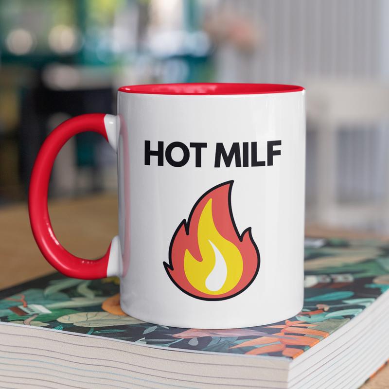 Чашка керамічна з принтом "hot milf" 330 мл, біла з червоною ручкою
