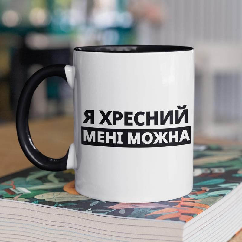 Чашка керамическая с принтом "я крестной мне можно" 330 мл, белая с черной ручкой