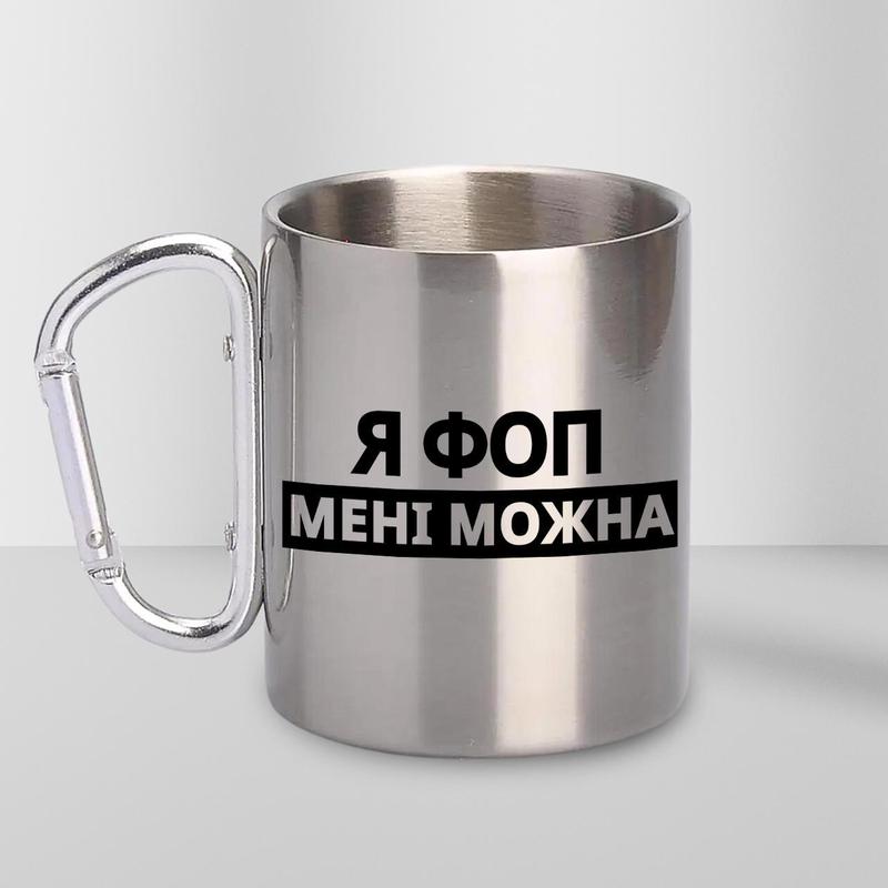 Чашка металлическая с принтом "я фоп мне можно" 300 мл с карабином, серебристая