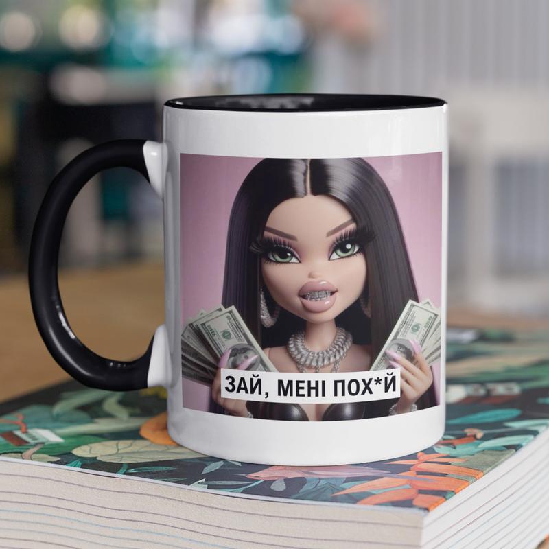 Чашка керамічна з принтом "зай мені пох*й" 330 мл, біла з чорною ручкою