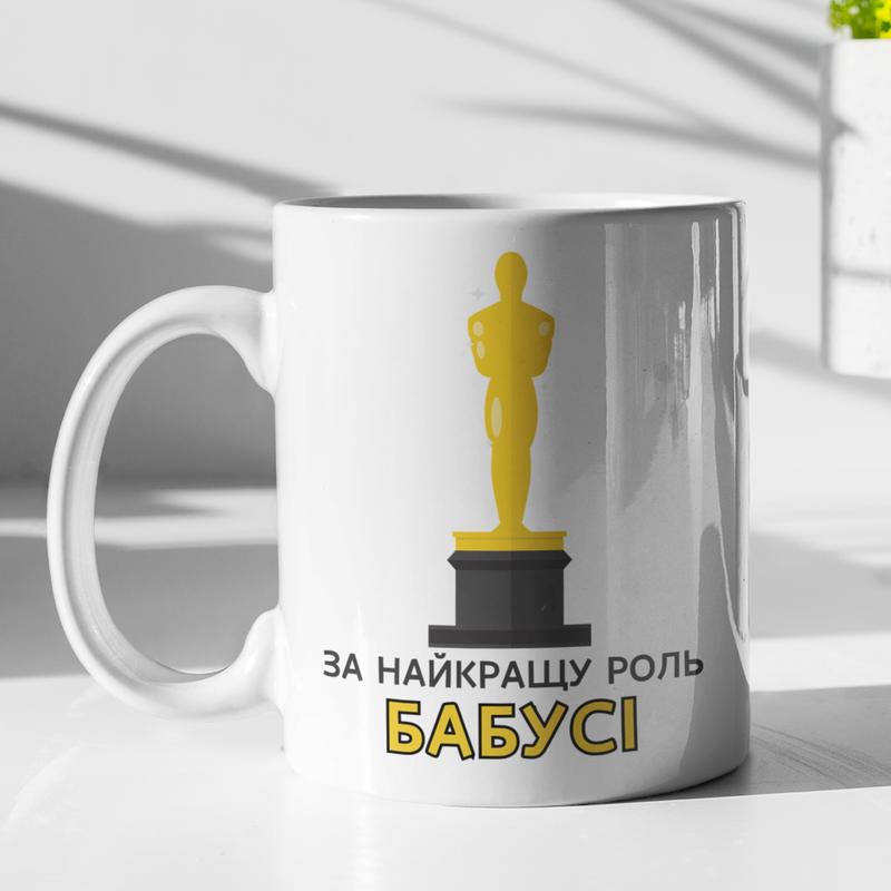 Чашка керамічна з принтом "за найкращу роль бабусі" 330 мл, біла