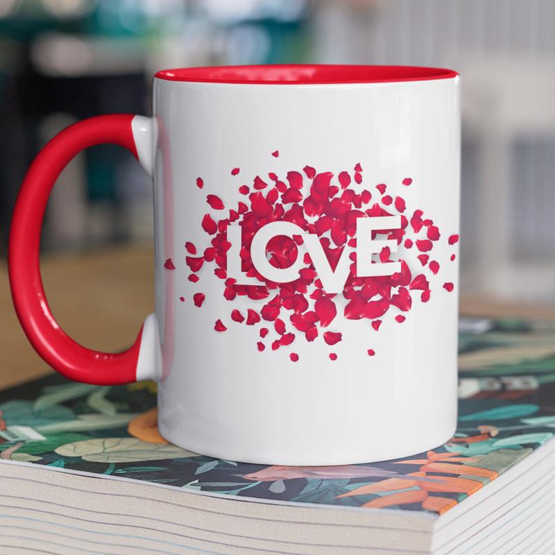 Чашка керамічна з принтом "love" 330 мл, біла з червоною ручкою